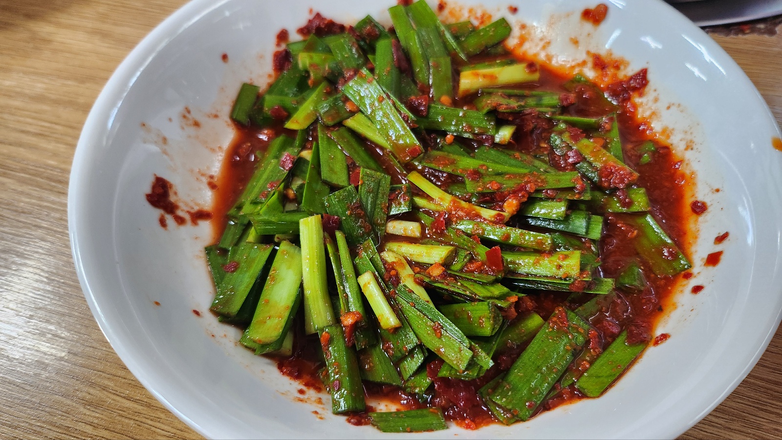 부추양념장에 떡을 올려 한입 먹으니 ~ 와우 떡의 쫀득함과 적당히 간이 베어 입맛을 돋우는 거대한 서사가 시작되는 한입이었어요.